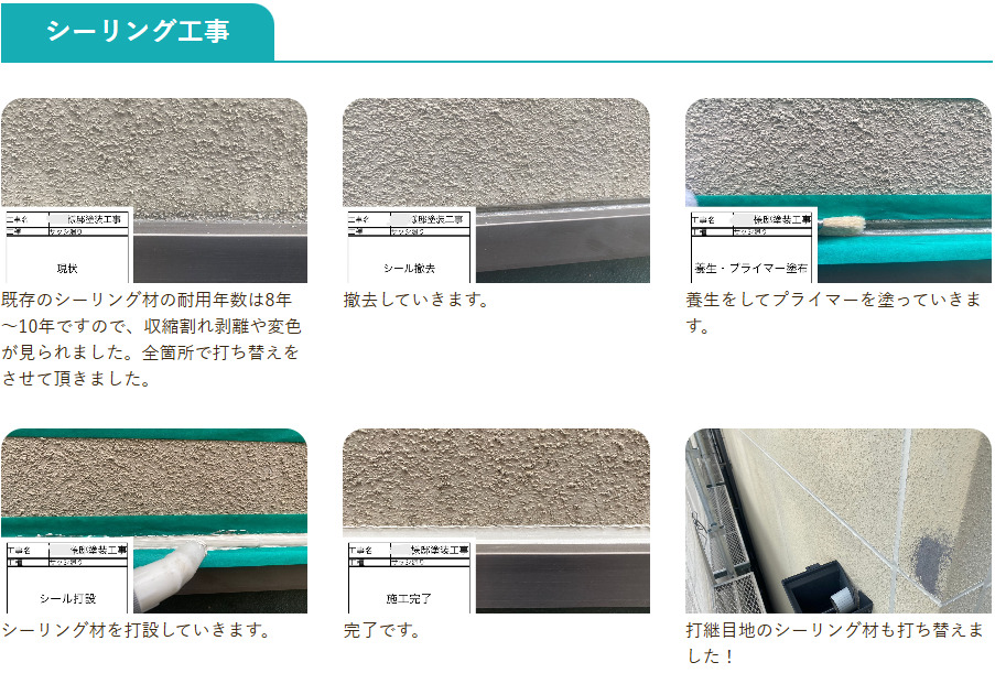 このように当店では、外壁塗装の際に、劣化したシーリング材の打ち替えを含む防水補修をセットで提案しています。