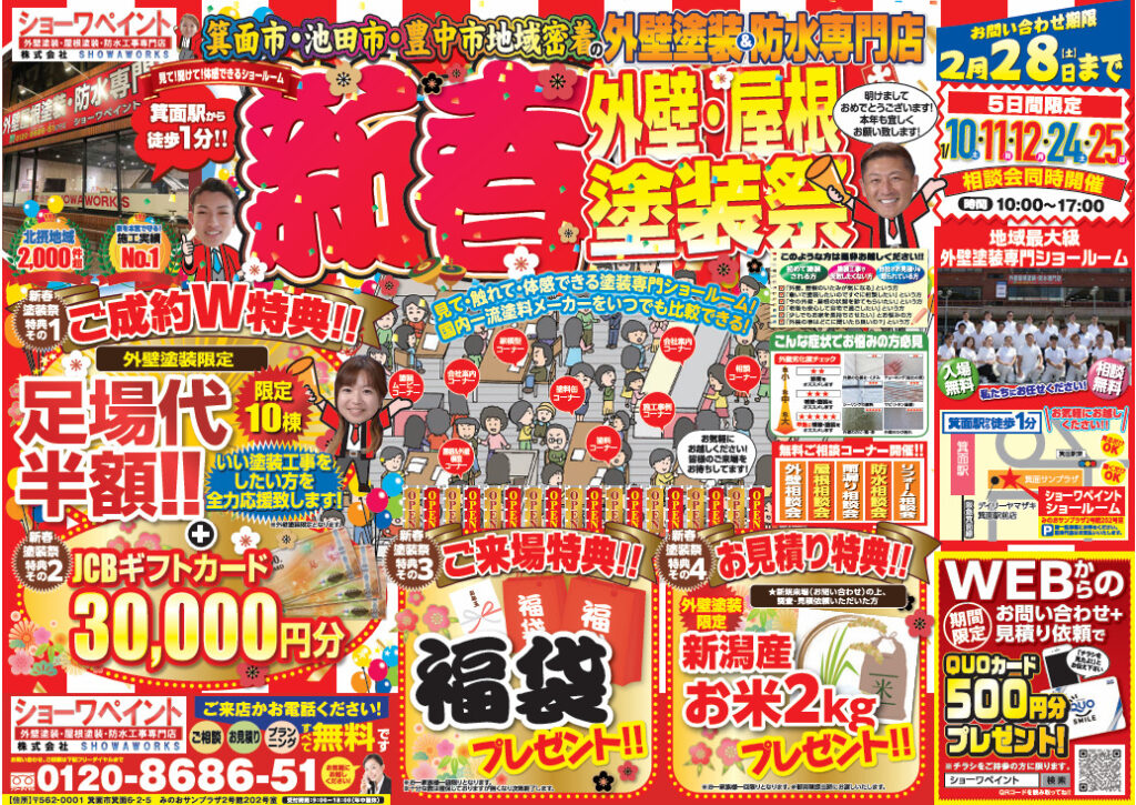 1/10(土)・1/11(日)・1/12(月)・1/24(土)・1/25(日)の5日間はショールームで塗装相談会を同時開催いたします!