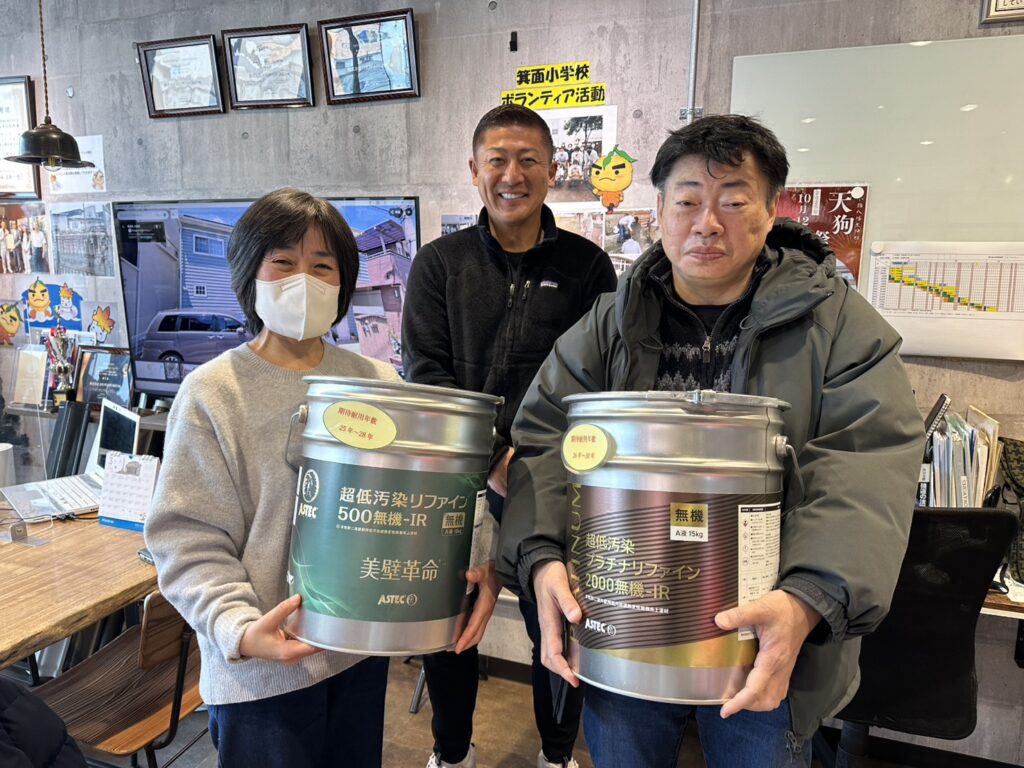外壁塗装は『超低汚染プラチナリファイン2000無機-IR』で塗装させていただきます。