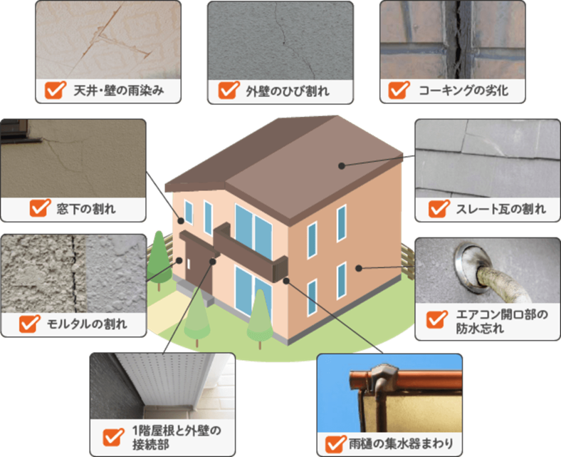 ●防水工事を検討するきっかけとなる代表的な劣化症状