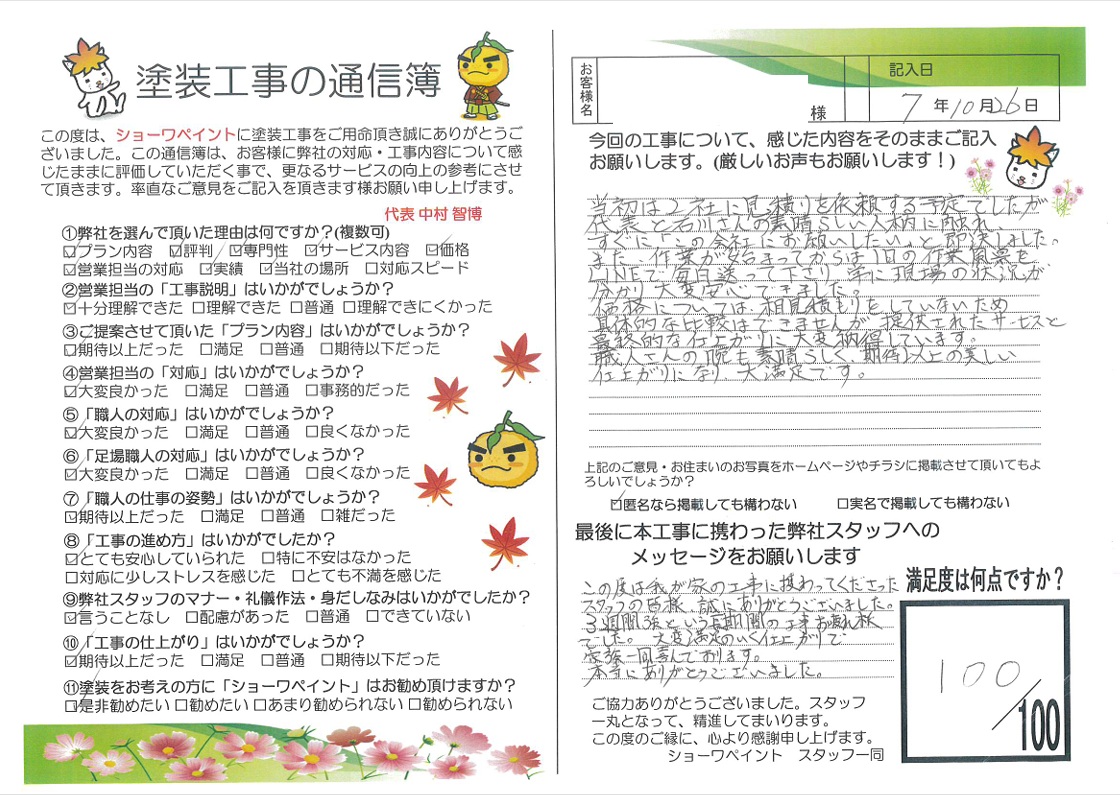 安心して工事をお任せいただけたとのお言葉を拝見し、