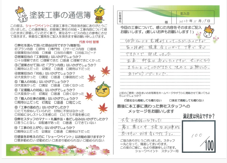 今後もご安心いただけるご提案と丁寧な施工を心がけてまいります。