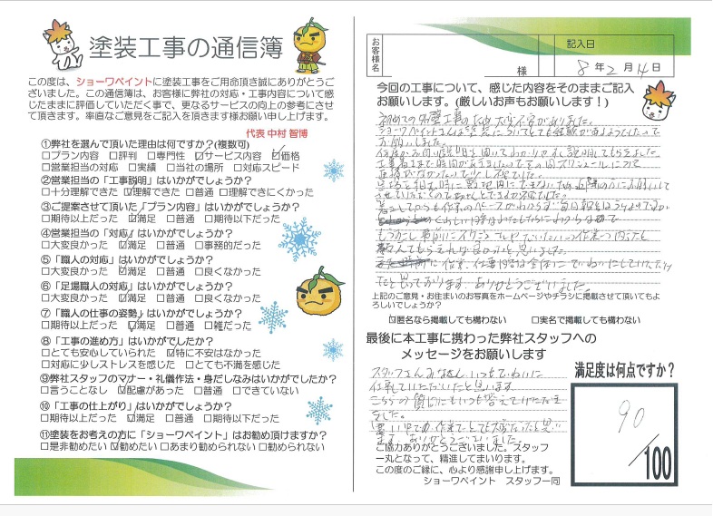 お願いします。(厳しいお声もお願いします!)初めての外装工事のため大変不安がありました。