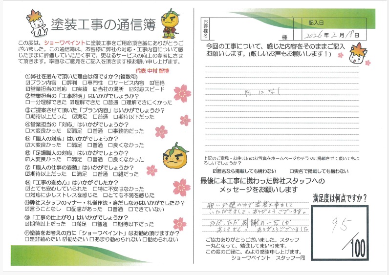 おかげさまで無事に工事を終えることができ、私どもも大変安心しております。お喜びいただけましたことが何よりの励みでございます。